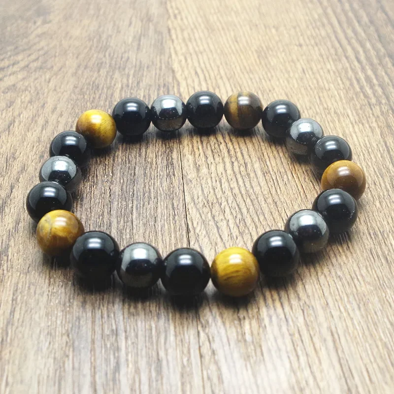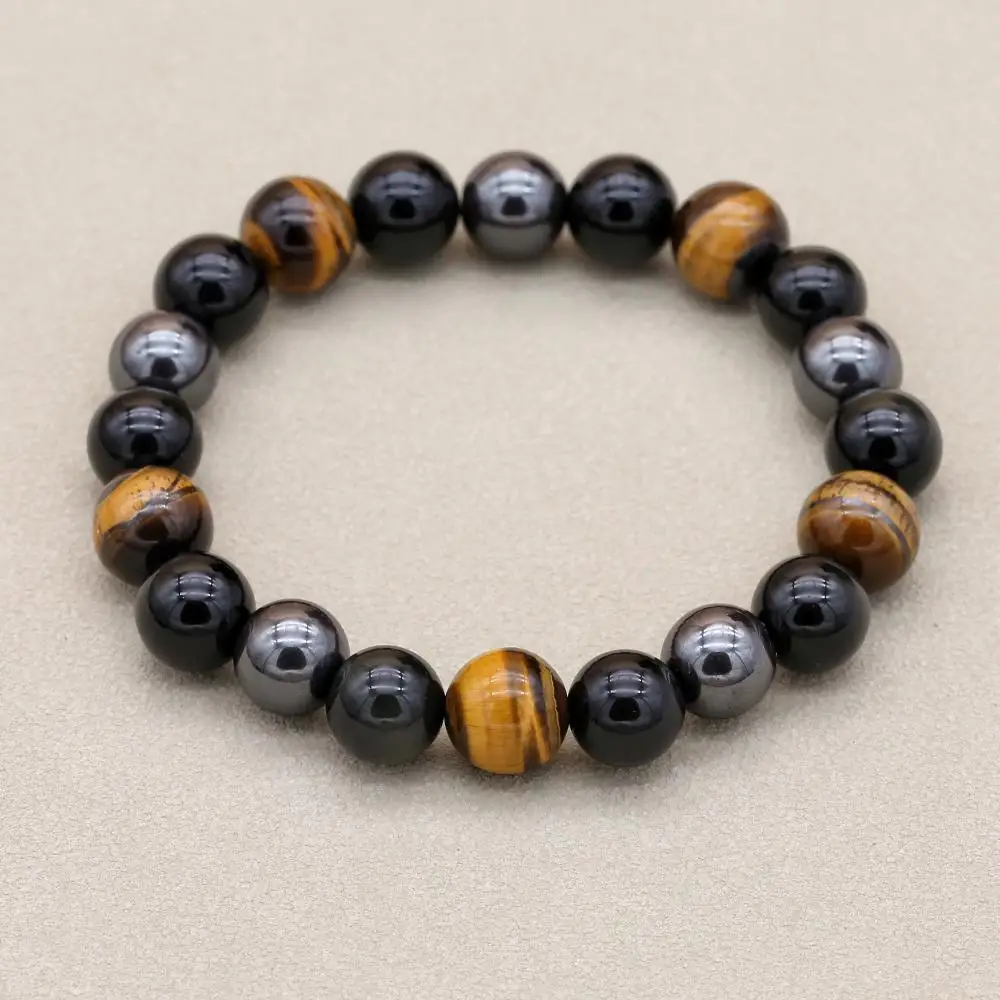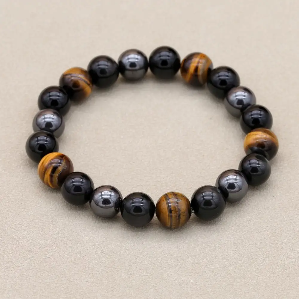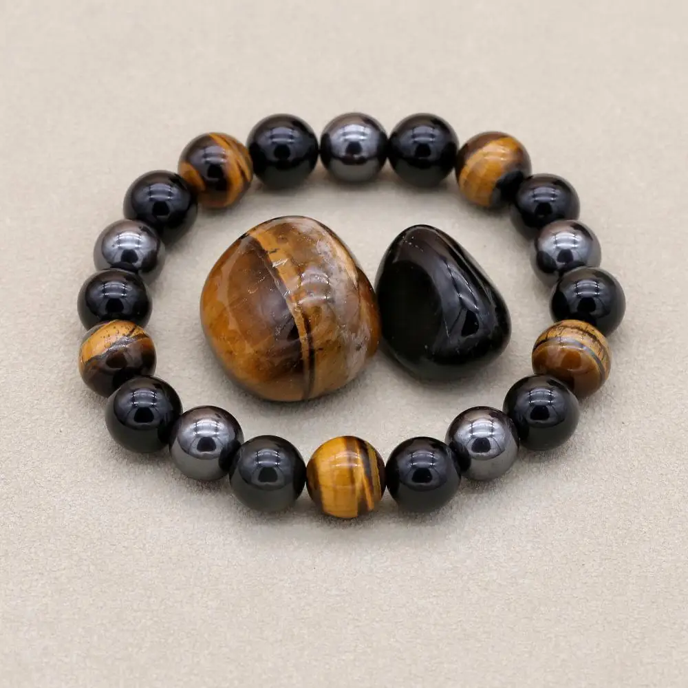 10mm Men Tiger Eye & Hematite & Black Obsidian Stone Bracelet Handmade DIY Jewelry